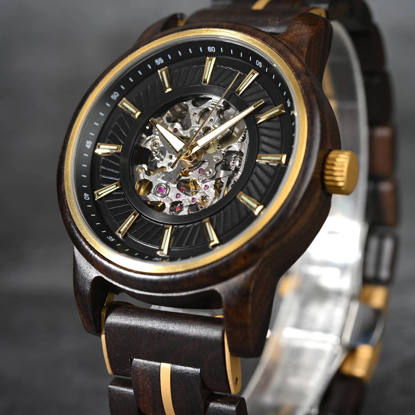 Men’s Automatic Mechanical Wooden Watch Handmade of Natural Ebony Limited Edition Collection – Pilot